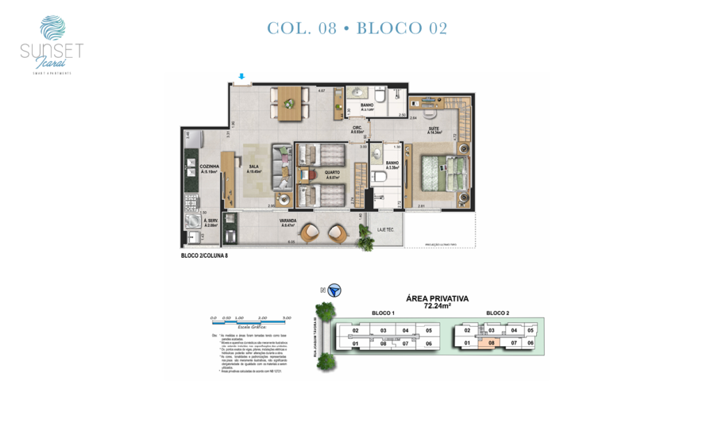 . Bicicletas compartilhadas (4 elétricas e 6 praianas) . 3 pontos para carregamento de carro elétrico . Market e Delivey . Medidor de água individual com leitura eletrônica.